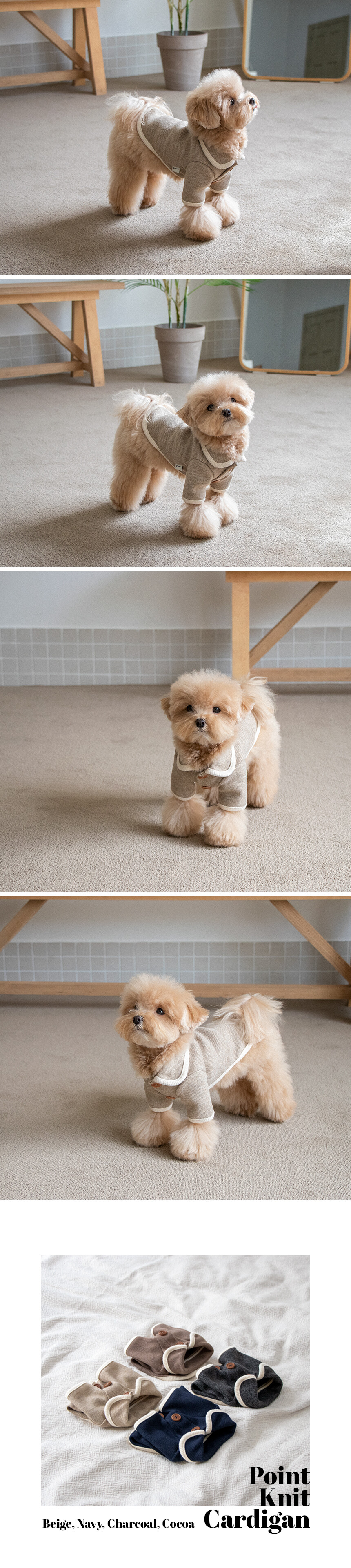 Point knit cardigan (Beige)